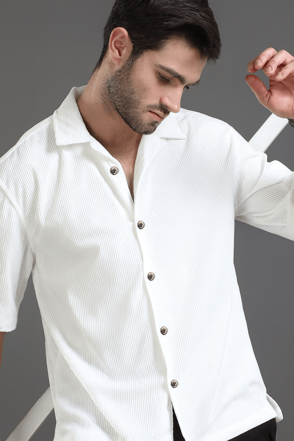 Cuban Collar Corduroy Half Sleeve Shirt |H-201